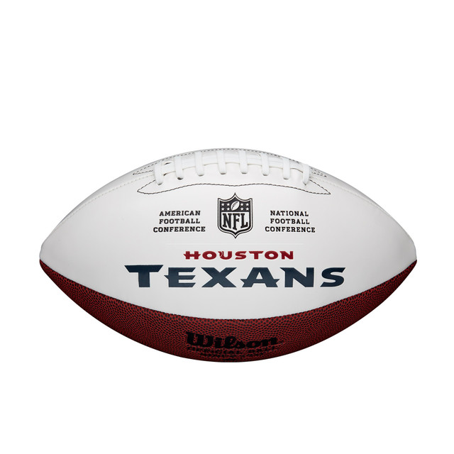 This classic team football features an embroidered team logo prominently displayed on the front with three smooth white panels provide ample autograph signing space. Ball comes bagged and deflated for easy autograph