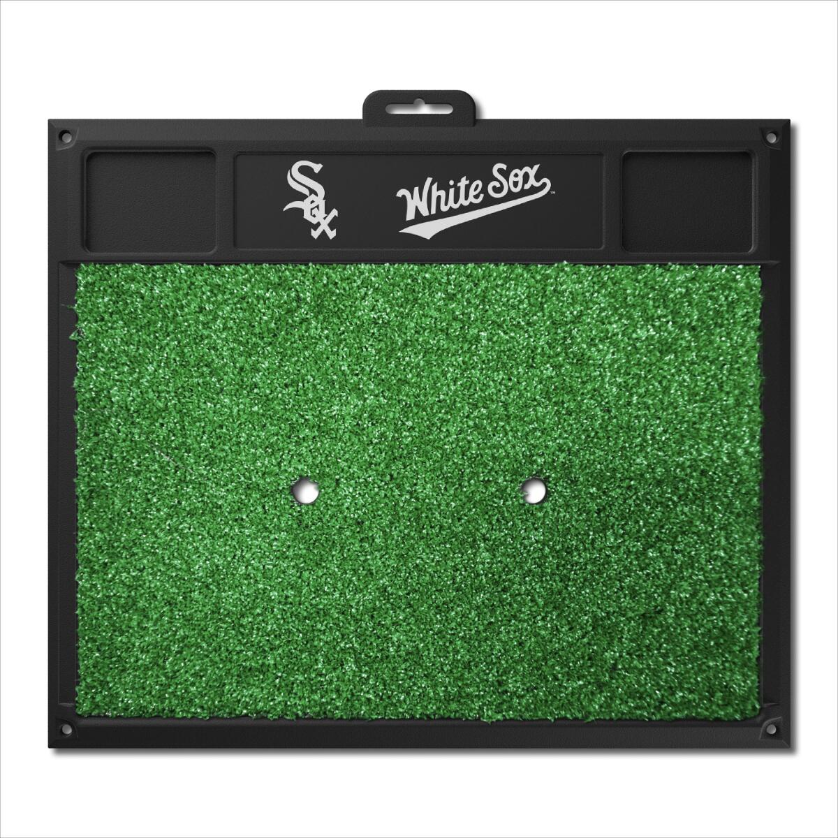 Work on your swing while showing off your team pride with Golf Hitting Mats from Sports Licensing Solutions! At the top of the mat is your teams name is molded in 3D and features true team colors. Made from a heavy duty vinyl base and filled with AstroTurf, this mat will save your lawn from any more divots. There are 2 Tee holes to allow both left and right handed golfers. A rubber tee is provided, but its removable to allow you to practice with your own tee. To maximize your time, next to the team logo are 2 cups to hold extra balls. The mat can be anchored to ground, with the 4 small holes the corners. This item is made to order and cannot be cancelled once it is ordered or returned for buyers remorse.