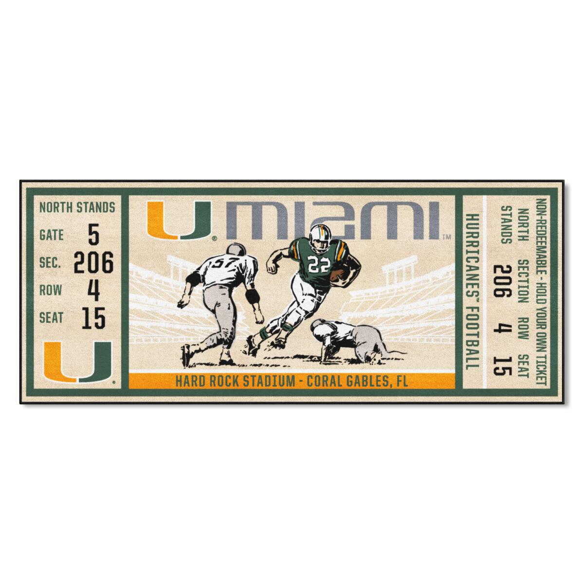 Miami Hurricanes Ticket Runner Rug - 30in. x 72in.