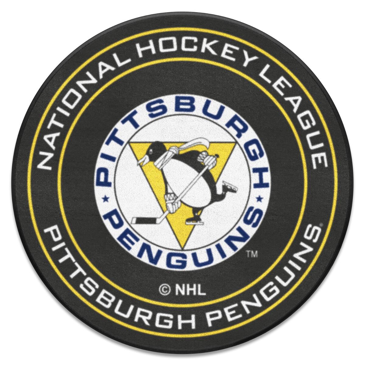 Retro NHL Pittsburgh Penguins Hockey Puck Rug - 27in. Diameter