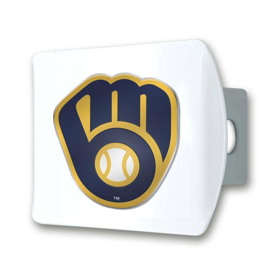 Milwaukee Brewers White Metal Hitch Cover with 3D Color Emblem