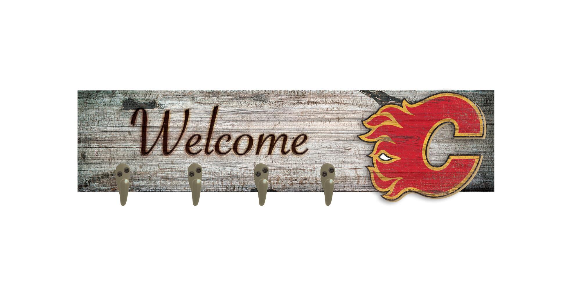 Welcome guests into your home while showcasing your team spirit with our Coat Hanger. This stylish piece features your favorite team's logo on the right side, accompanied by the word "Welcome" to the left. The hangers below provide a convenient and organized space for hanging coats, ensuring a clutter-free entryway. The distressed wood design of the background adds a rustic and inviting touch to any wall.
