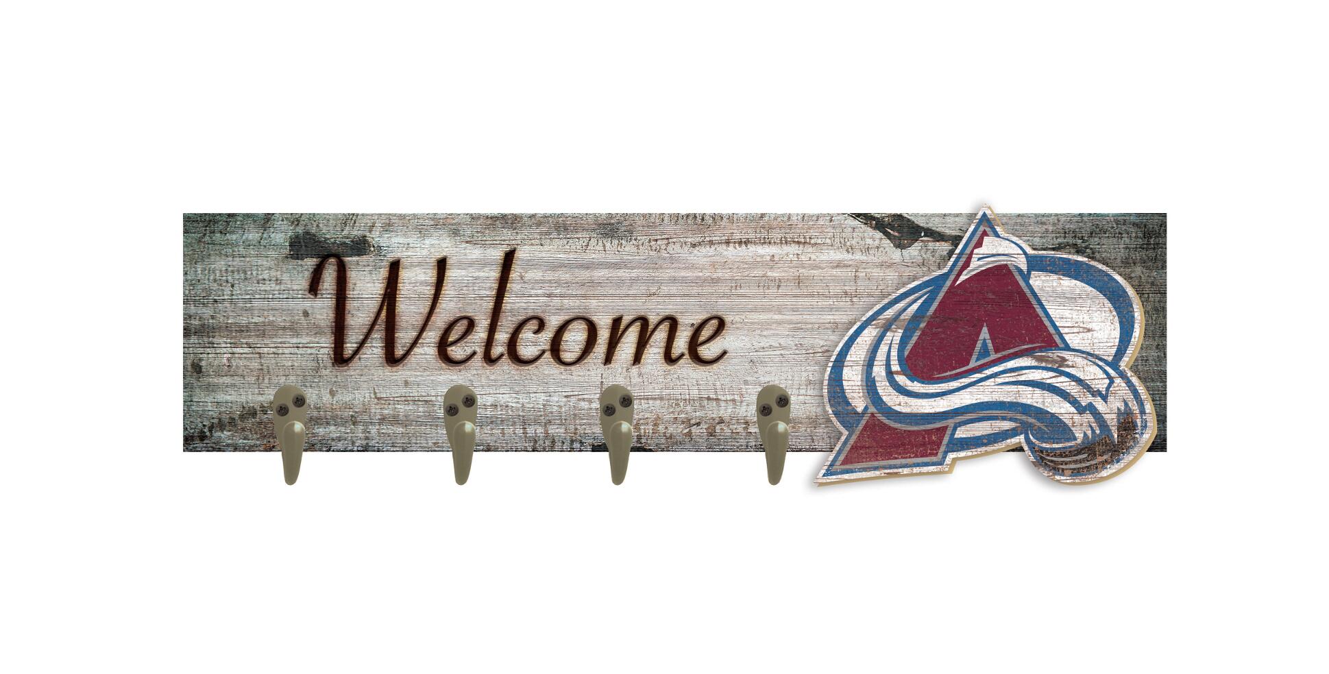 Welcome guests into your home while showcasing your team spirit with our Coat Hanger. This stylish piece features your favorite team's logo on the right side, accompanied by the word "Welcome" to the left. The hangers below provide a convenient and organized space for hanging coats, ensuring a clutter-free entryway. The distressed wood design of the background adds a rustic and inviting touch to any wall.