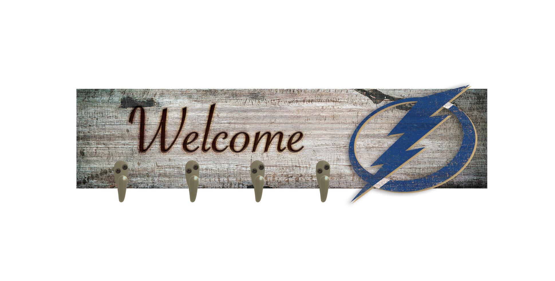 Welcome guests into your home while showcasing your team spirit with our Coat Hanger. This stylish piece features your favorite team's logo on the right side, accompanied by the word "Welcome" to the left. The hangers below provide a convenient and organized space for hanging coats, ensuring a clutter-free entryway. The distressed wood design of the background adds a rustic and inviting touch to any wall.