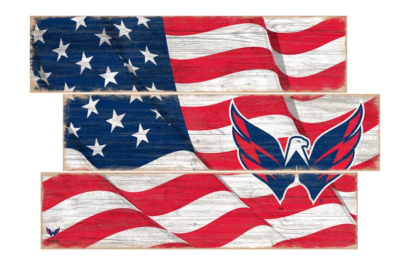Here's a great way to display your fan loyalty with this cool three plank wall sign by Fan Creations wth your team's logo and the American Flag! Digitally printed on Medium Density Fibreboard (MDF), it features three individual 6" x 24" panels and a distressed white background with team logos, team name and date established. Proudly hang it in the office, the game room or man cave.