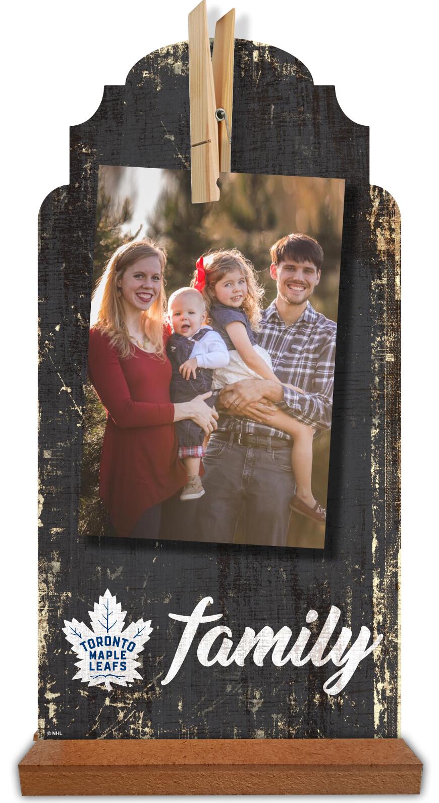 Display your family memories with this 6x12 piece that features your favorite team's logo and a clip above it to hang your photo. The bottom of the piece says "Family" with your team's logo beside it. Cut and printed on MDF, Made in the USA
