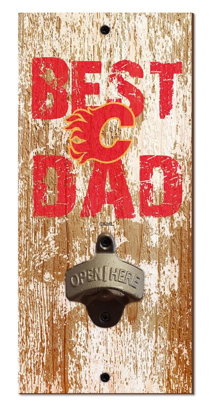 Calgary Flames Best Dad Bottle Opener   Wood Sign