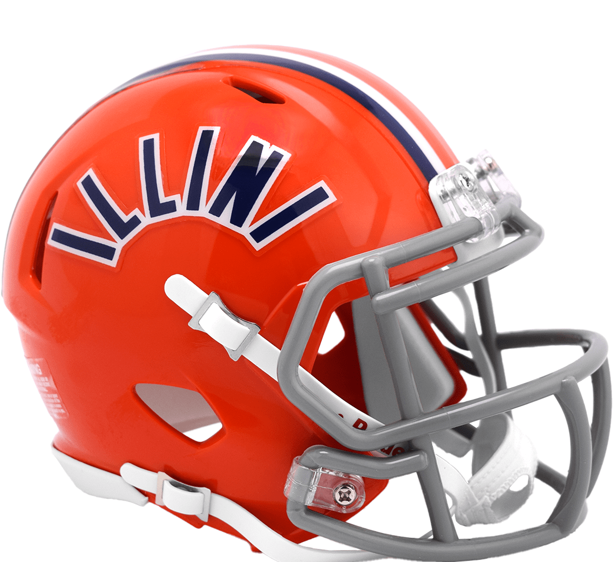 Illinois Fighting Illini Mini Speed College Football Helmet. The ultimate NCAA College mini speed football helmet collectible, perfect NCAA mini speed football helmets for autographs and collectors. Mini Speed Football Helmet with great graphics. Official NCAA Mini Speed Football Helmet with official NCAA team decal. ABS plastic Mini Speed Football Helmet shells with plastic facemask. Realistic interior foam padding, vinyl-leather chin strap. This is an affordable NCAA football helmet for the true fan. Size: 1/2 scale versions of NCAA football helmets. Size: 6"(L), 4½"(W), 5"(H) - (NOT FOR WEARING).