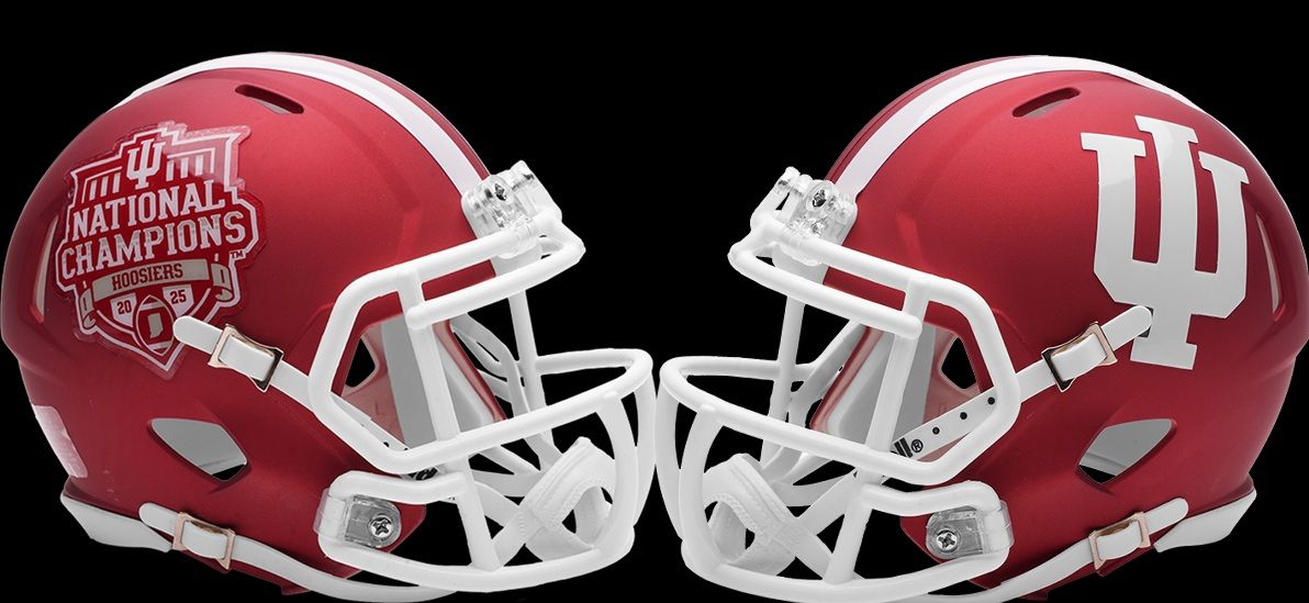 Indiana Hoosiers Mini Speed College Football Helmet. The ultimate NCAA College mini speed football helmet collectible, perfect NCAA mini speed football helmets for autographs and collectors. Mini Speed Football Helmet with great graphics. Official NCAA Mini Speed Football Helmet with official NCAA team decal. ABS plastic Mini Speed Football Helmet shells with plastic facemask. Realistic interior foam padding, vinyl-leather chin strap. This is an affordable NCAA football helmet for the true fan. Size: 1/2 scale versions of NCAA football helmets. Size: 6"(L), 4½"(W), 5"(H) - (NOT FOR WEARING).