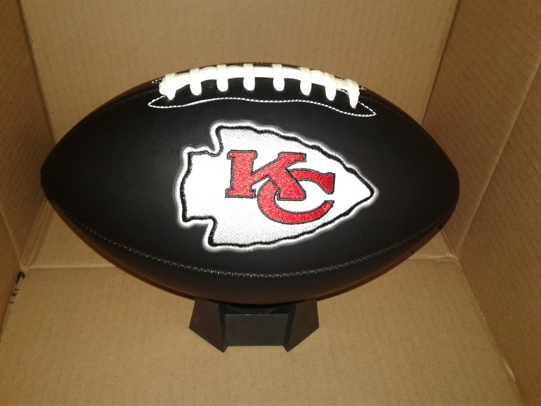 Kansas City Chiefs Black Matte Logo Full Size Football. Makes a great gift for the huge Chiefs fan. This full size football makes a great collectible for the man cave or bedroom. Also is great for throwing around outside on those cool fall days.