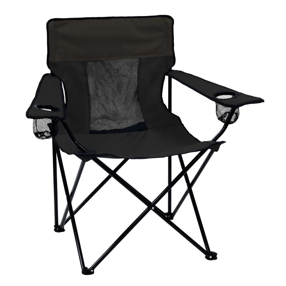 The Elite Chair goes where you do. Made of a sturdy, powder-coated, steel frame and double layered polyester, it has an 18" x 23" seating area that safely holds up to 275 pounds. The Elite Chair features adjustable armrests with mesh cup holders. Your favorite team's logo is screen printed on the vented, breathable front and back as well as on the matching drawstring carrying bag with shoulder strap. Flat, wide-based feet provide better stability. The Elite Chair is ideal for showing your spirit while tailgating, camping, cooking out, or any fun outdoor activities.