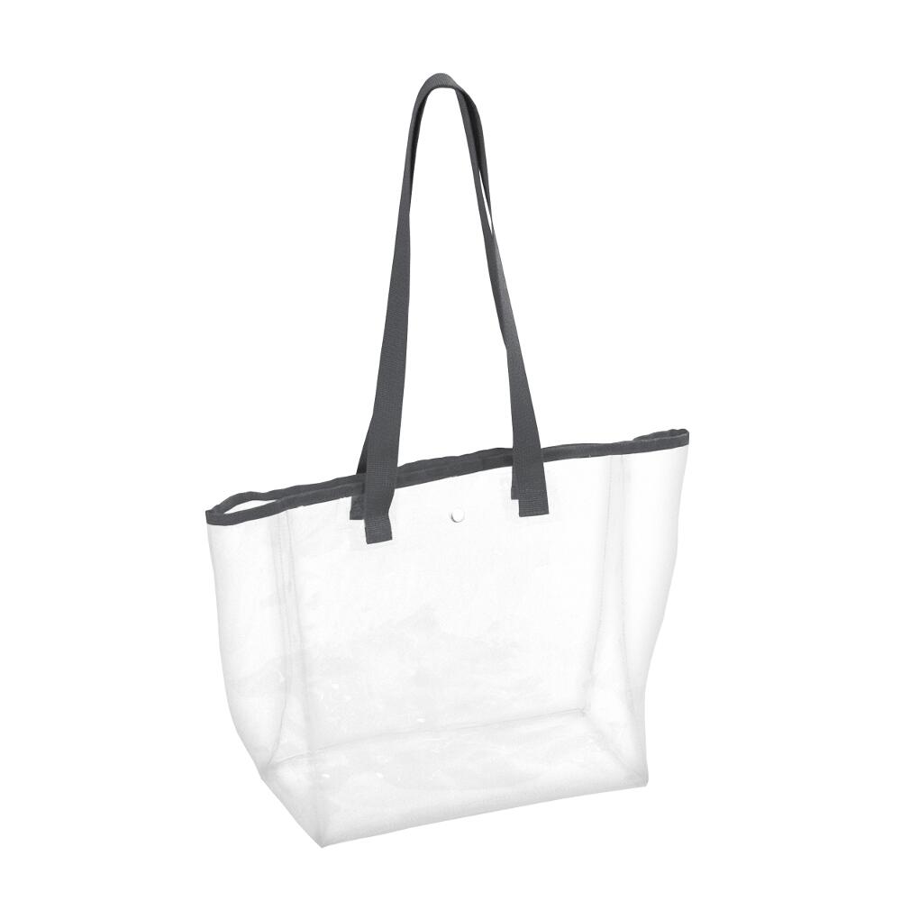 The Stadium Clear Tote meets most stadium restrictions, making bag checks a breeze. It's made of sturdy clear plastic, and has a snap closure. It measures a roomy 12" x 12" x 6" and is spacious enough to hold all your personal essentials on game day. This tote prominently features your favorite team's logo. It has a 12" drop shoulder strap, and wipes clean after each use.