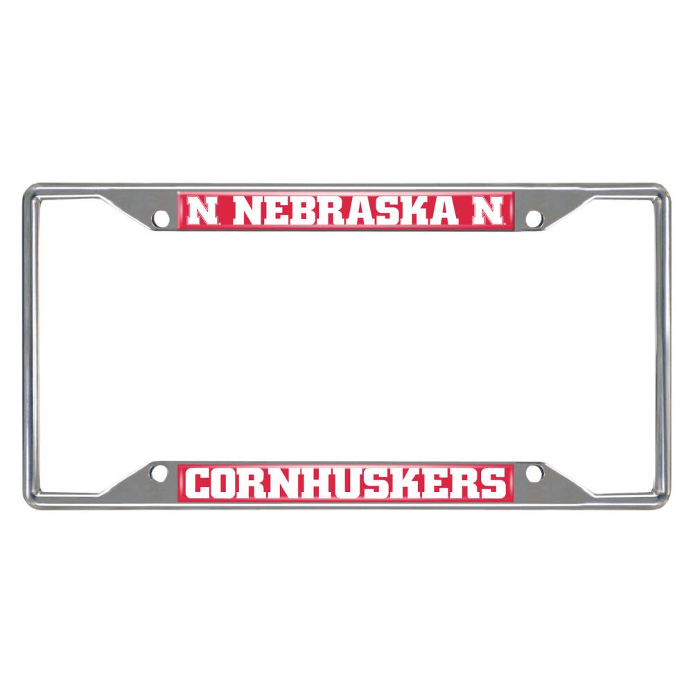 Nebraska Cornhuskers Chrome Metal License Plate Frame, 6.25in x 12.25in