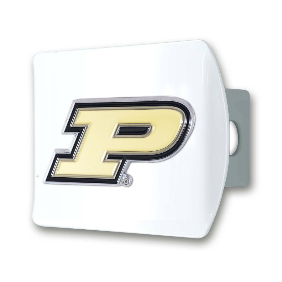 Purdue White Metal Hitch Cover with 3D Color Emblem