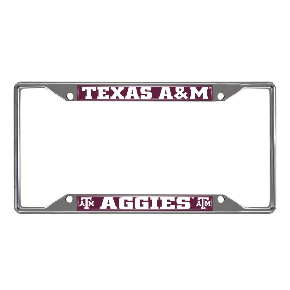 Texas A&M Aggies Chrome Metal License Plate Frame, 6.25in x 12.25in