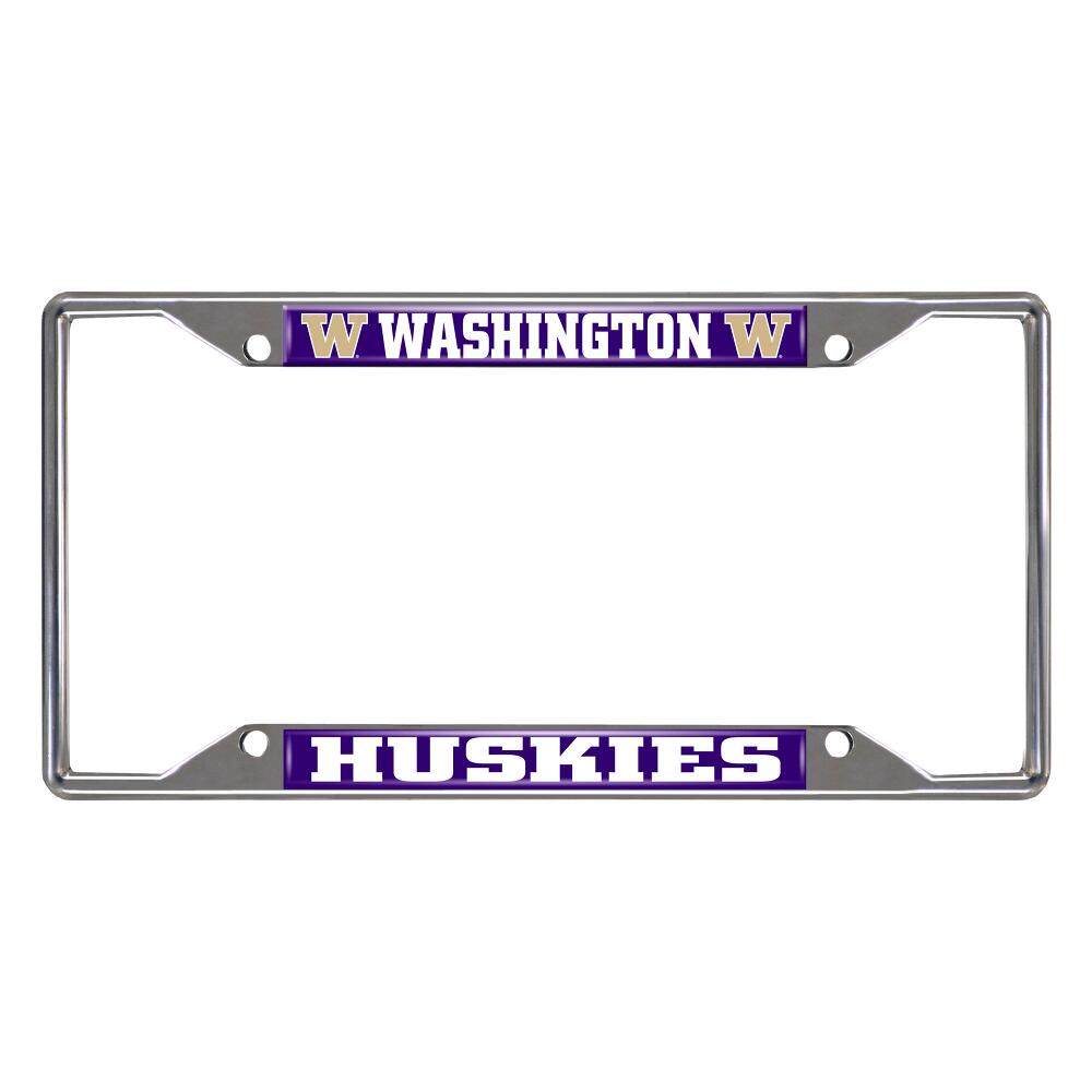 Washington Huskies Chrome Metal License Plate Frame, 6.25in x 12.25in