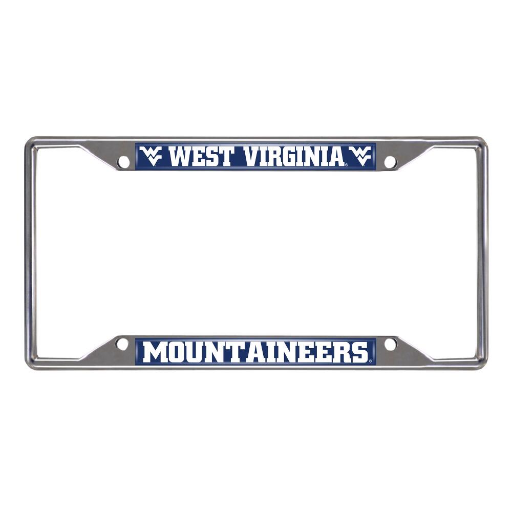 West Virginia Mountaineers Chrome Metal License Plate Frame, 6.25in x 12.25in