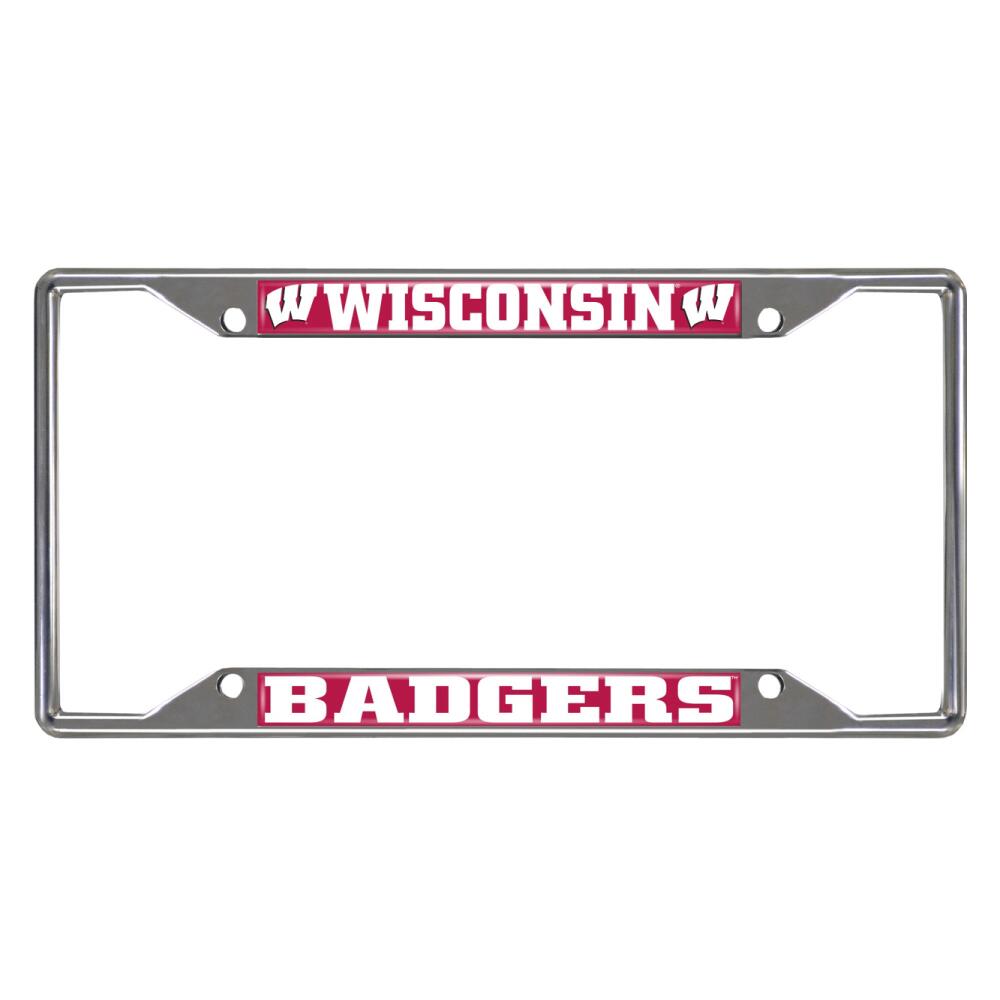 Wisconsin Badgers Chrome Metal License Plate Frame, 6.25in x 12.25in