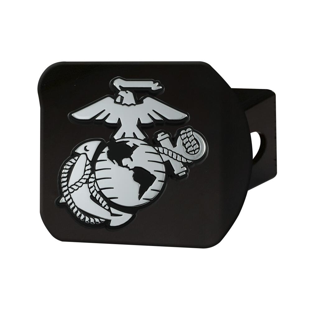 U.S. Marines Black Metal Hitch Cover with Metal Chrome 3D Emblem