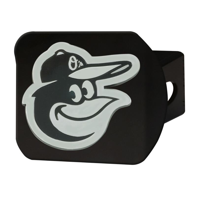Baltimore Orioles Black Metal Hitch Cover with Metal Chrome 3D Emblem