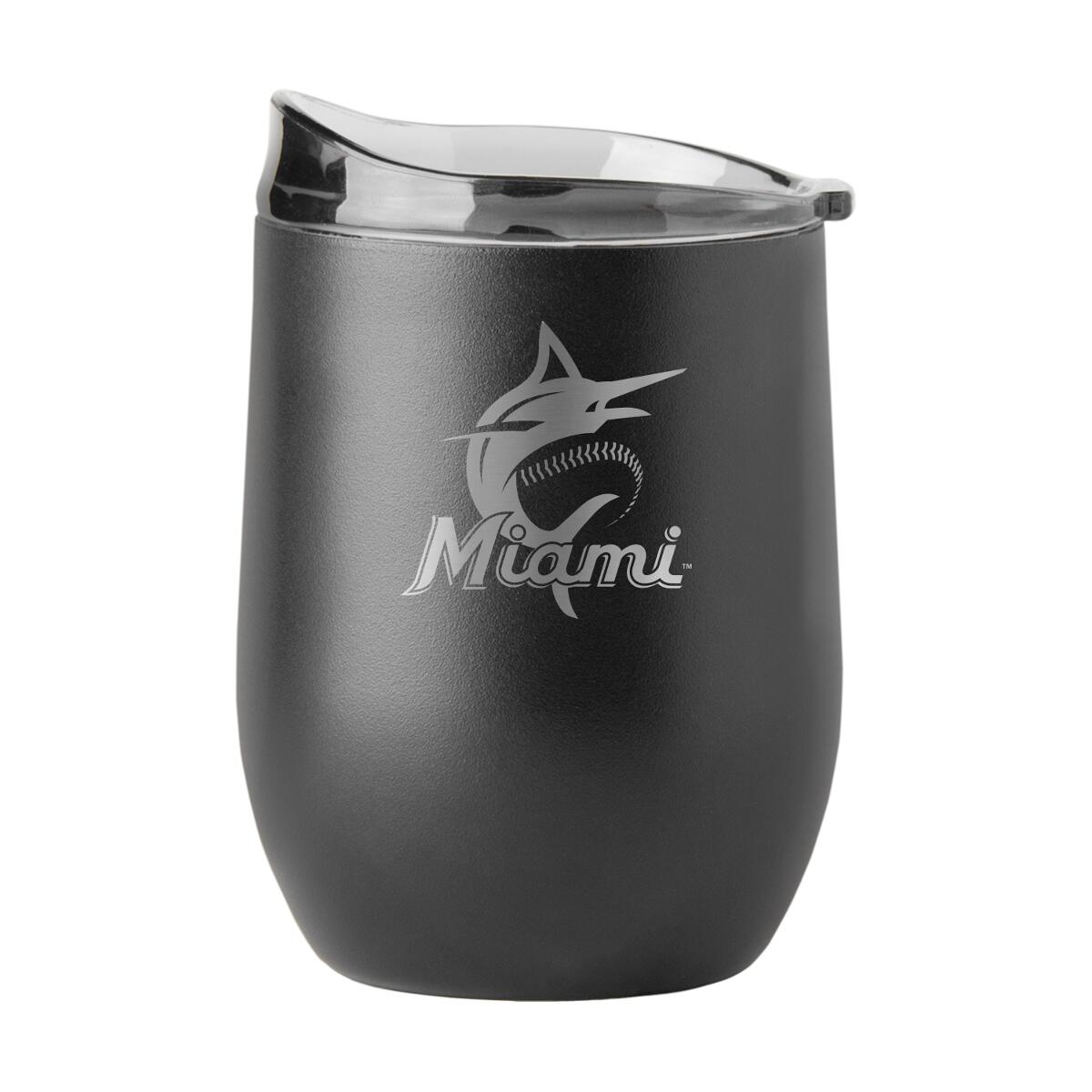 Miami Marlins 16oz Black Etch Powder Coat Curved Bev