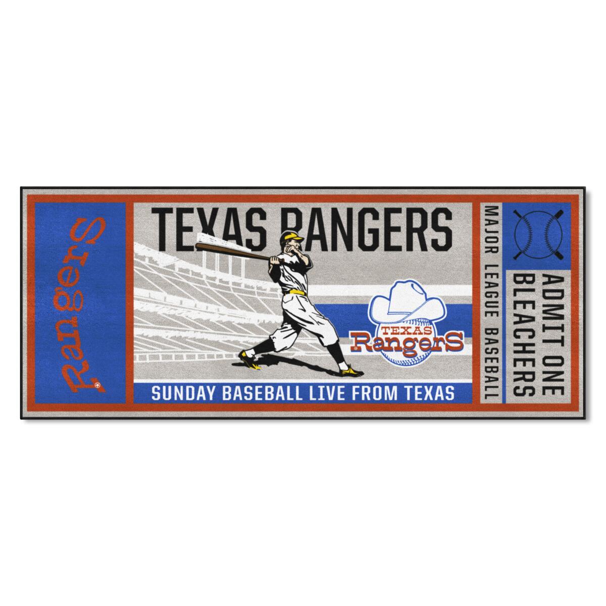 Always have your ticket to the game with Sports Licensing Solutions Ticket Runner Mat, with new MLB retro logo designs. The uniqueness of this 30 inches tall by 72 inches wide mat will sure to be a big conversation starter on game day. Made from nylon carpet with a vinyl backing, this mat can handle anything that you throw at and moderate foot traffic. Keep your mat looking new for year with regular vacuuming and is even safe to use in the washing machine. Ticket Runner mats make the perfect gift for any die-hard fan. Produced and Printed int the USA. This item is made to order and cannot be cancelled once it is ordered or returned for buyers remorse.