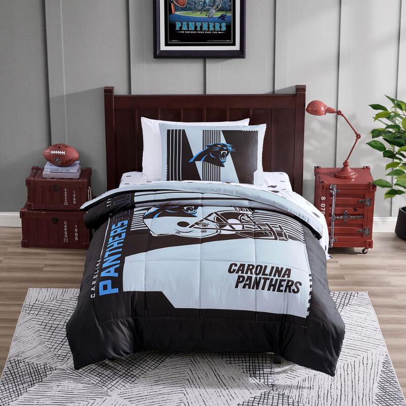 Create the ultimate sports fan room of your dreams by styling your entire bed in one go with our 'Status' Bed-In-A-Bag Set. This complete and officially licensed set will have you wishing a super bowl victory was as easy as styling your bed. Enjoy the buttery soft microfiber flat and fitted sheets, cozy queen-sized comforter and two matching pillow shams designed with the latest team logos and produced in their iconic team colors. The microfiber polyester comforter is box-stitched to evenly distribute the down-alternative filling and prevent shifting. It is completed with matching pillow shams. The sheets made from microfiber polyester are wrinkle, fade and shrink resistant. It features a matching flat sheet and fitted sheet with a fully elasticized 14" deep-pocket.