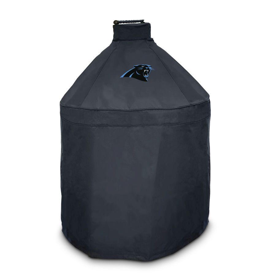 Introducing the official Carolina Panthers Kamado Grill Cover by FANMATS, the ultimate accessory for every fan and grill master! This high-quality grill cover not only protects your beloved grill but also proudly displays the official Panthers' logo, making it a must-have for game day gatherings and cookouts. It also makes a great gift for any football fan. Measuring 27 inches in diameter and 40 inches in height, this grill cover is designed to fit most Kamado-style grills. Its sturdy construction features heavy-duty and waterproof canvas fabric made of a strong woven polyester yarn with a vinyl coating, ensuring that your grill remains shielded from the elements and looking sharp season after season. Available for most top NFL teams, you can showcase your team loyalty while keeping your grill in top-notch condition. The officially licensed team logo, printed in a bold and eye-catching design, lets everyone know where your allegiance lies. For added convenience, this grill cover features a velcro strap which holds the cover snugly against your grill, preventing it from being blown away by the wind. With this official Panthers grill cover you can combine your love for grilling and your passion for the Panthers, all while ensuring your grill stays protected and ready to cook up a winning feast on game day.