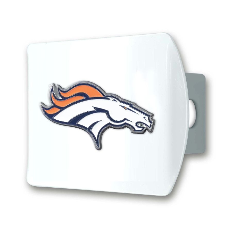 Denver Broncos White Metal Hitch Cover with  3D Color Emblem
