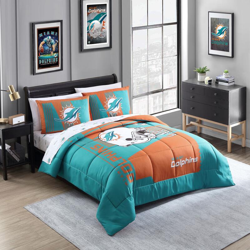 Create the ultimate sports fan room of your dreams by styling your entire bed in one go with our 'Status' Bed-In-A-Bag Set. This complete and officially licensed set will have you wishing a super bowl victory was as easy as styling your bed. Enjoy the buttery soft microfiber flat and fitted sheets, cozy queen-sized comforter and two matching pillow shams designed with the latest team logos and produced in their iconic team colors. The microfiber polyester comforter is box-stitched to evenly distribute the down-alternative filling and prevent shifting. It is completed with matching pillow shams. The sheets made from microfiber polyester are wrinkle, fade and shrink resistant. It features a matching flat sheet and fitted sheet with a fully elasticized 14" deep-pocket.