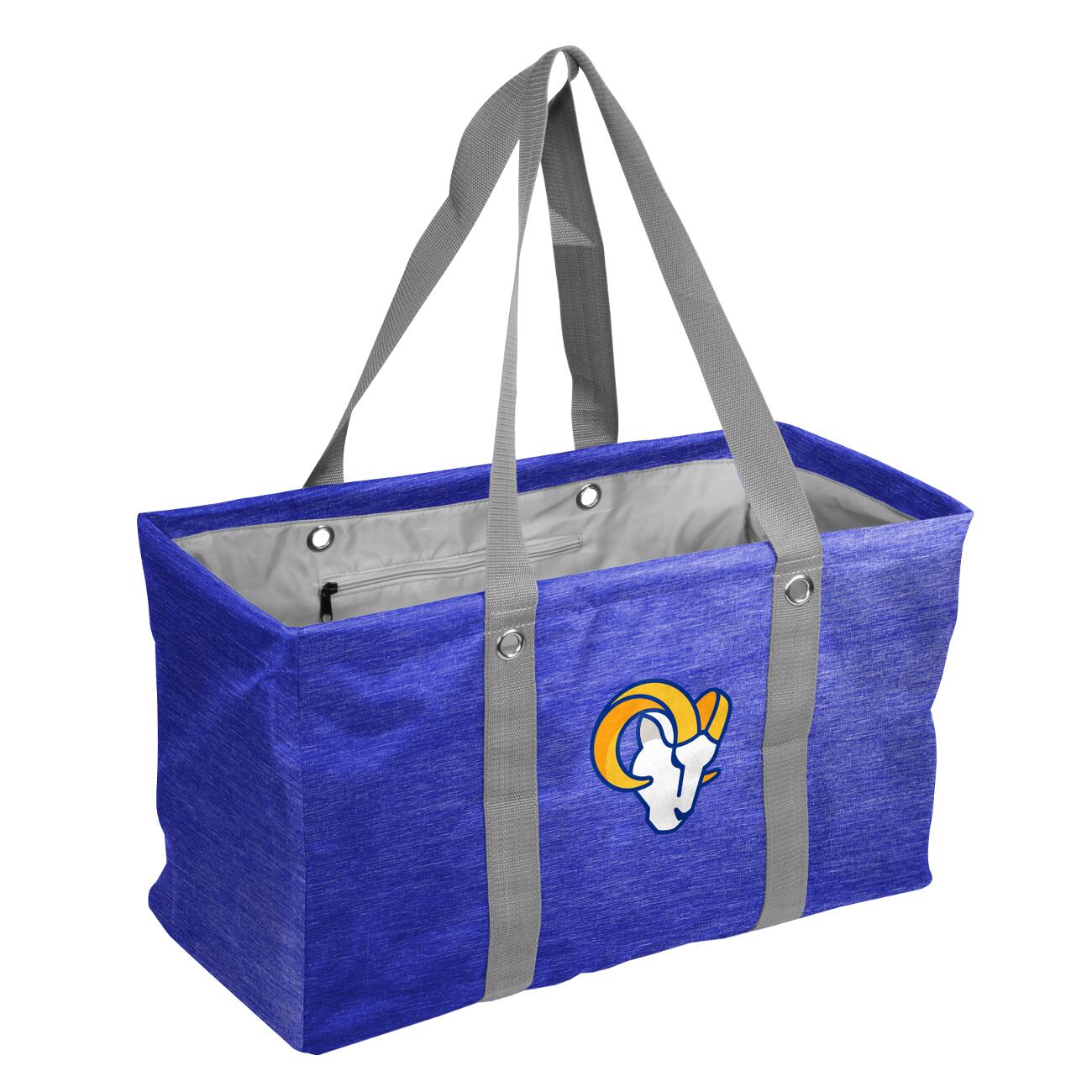 The Picnic Caddy is an innovative and stylish solution for transporting your essentials to any gathering while showing off your team spirit. This multipurpose, oversized tote features your favorite team's colors and logo. Its construction includes a sturdy bottom and wire top frame. The open top makes it easy to pack and find items. The caddy has reinforced handles with grommets that allow you to carry heavy loads, including sporting equipment or groceries, and it folds flat for easy storage. An interior zipper pocket helps you keep track of small items like bottle openers and car keys. This will be your go-to tote when packing for a tailgate, camping, the beach, the pool or any outdoor activity.
