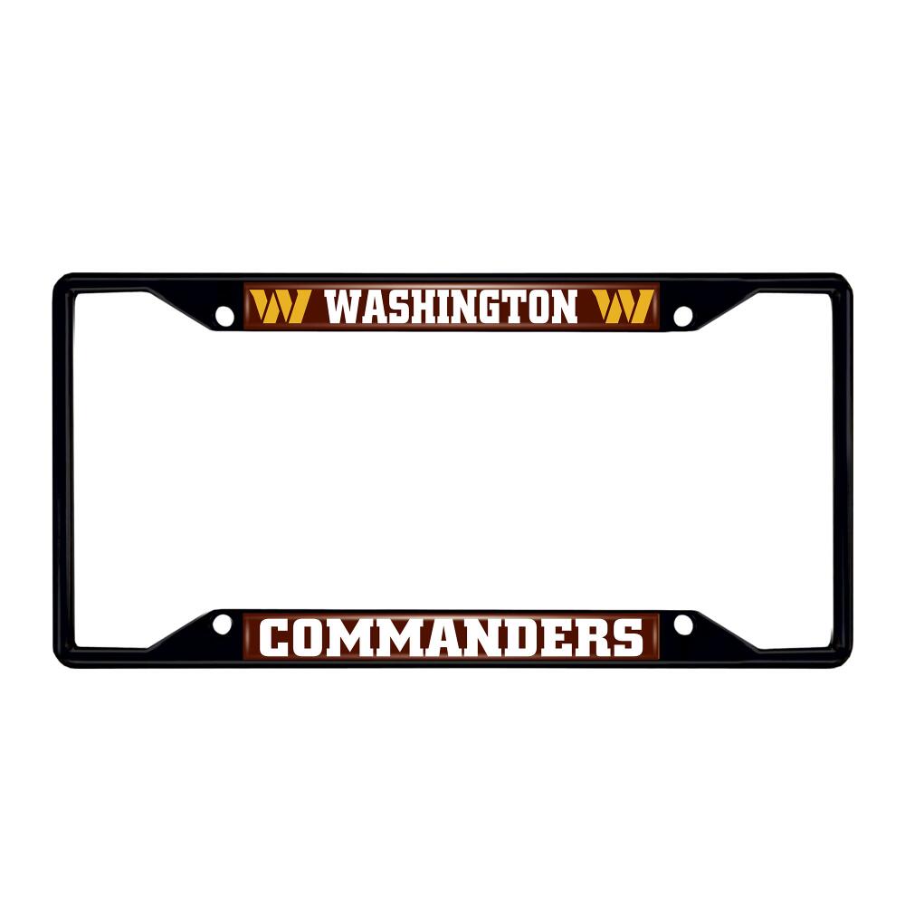 Show off your team pride in style with the Black Metal License Plate Frame from FANMATS. This sleek and long-lasting frame is made of weather resistant metal for a durable product finish. The team name is boldly displayed on the top and bottom portion of the frame in a domed, full color sticker. Our frame is 12.25 in x 6.25 in and is designed to fit perfectly around your license platewithout covering your registration sticker (if applicable).