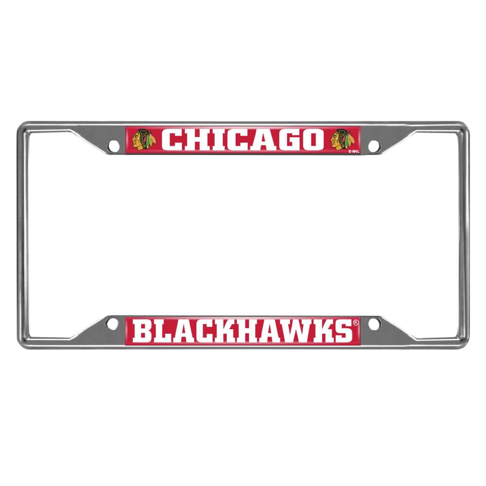 Chicago Blackhawks Chrome Metal License Plate Frame, 6.25in x 12.25in