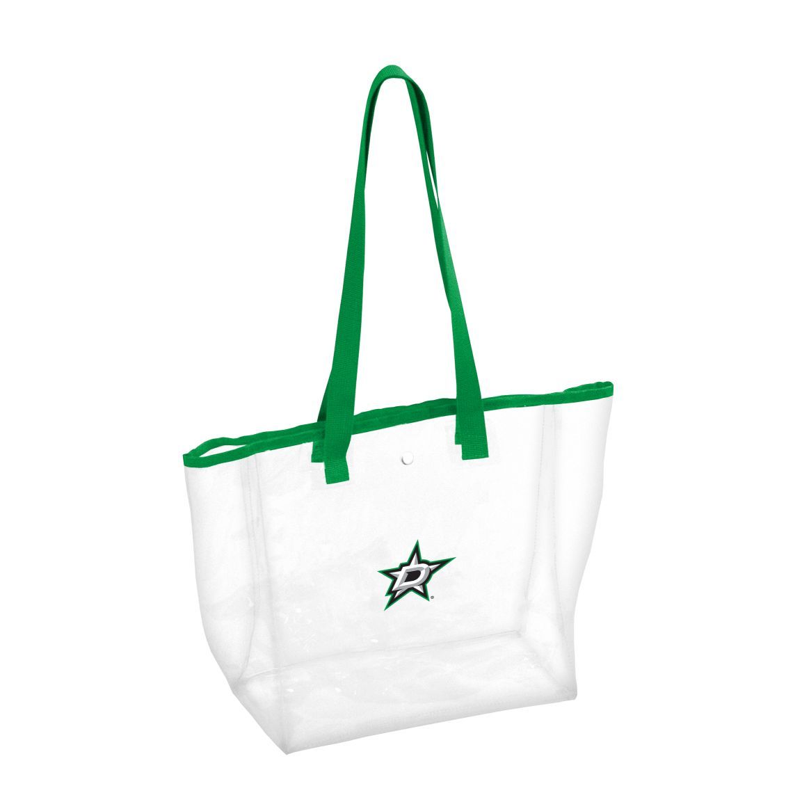 The Stadium Clear Tote meets most stadium restrictions, making bag checks a breeze. It's made of study clear plastic and has a snap closure. It measures a roomy 12"x 12"x 6"and is spacious enough to hold all your personal essentials on game day. This tote prominently features your favorite team's logo. It has a 12"drop shoulder strap and wipes clean after each use. Measures: 12"x 12"x 6", Materials: PVC, polyester