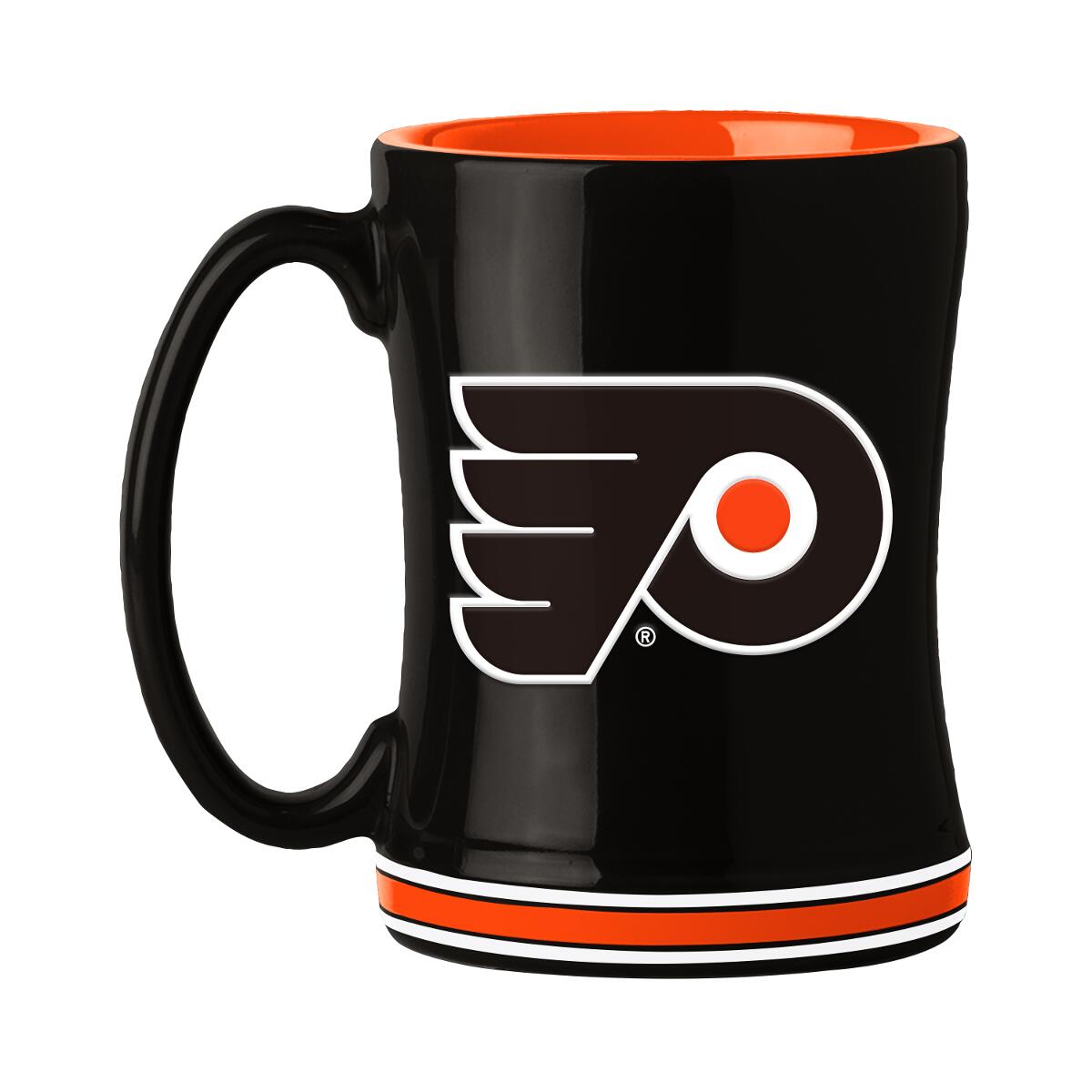 Enjoy this 14 oz. concave ceramic mug featuring your favorite team's colors. A 3-D raised logo adds extra detail, along with a stripe around the bottom. Team name appears on the handle.