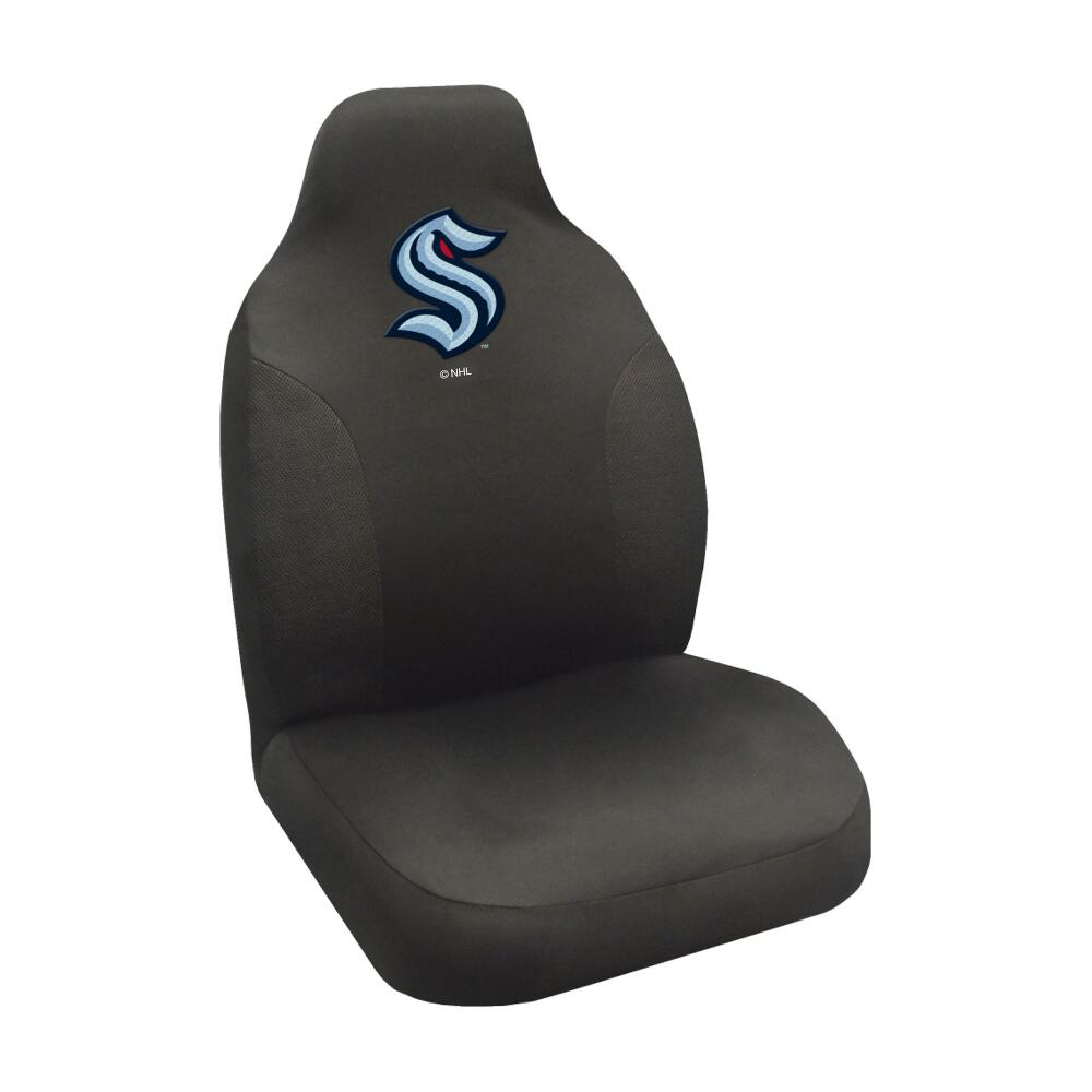 Protect your seats while showing off your team with Sports Licensing Solutions Embroidered Seat Covers. Embroidering the logo means that the logo will never come off. The black polyester material that makes up the seat covers is soft and the side mesh panels add a touch of style while being breathable so it doesn’t get to hot in the summer. While the cover slips over the seat there is also a set of hooks that go between the seat base and back to ensure that the cover is stable and doesn’t move while driving. The seat covers will conform to most seats, they only seats it doesn’t work with are seats with attached arm rest or side airbags for safety reasons. Keep your cover looking new with a quick wash on a gentle cycle and then let air drive. Sold individually.