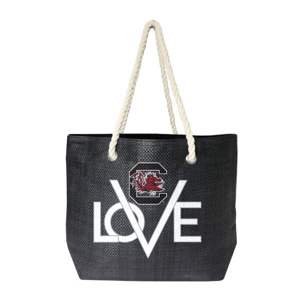 Be environmentally friendly and fashionable while carrying the Love Tote by Littlearth. Featuring a "love heart" and your team's full color logo, this light-weight tote is made of woven paper with a braided rope handle. Body material: 100% paper, Lining: 100% polyester, Handle: 100% cotton. Measures 20 inches wide, 6 inches deep, and 14 inches tall. Polyester lining with interior patch pocket