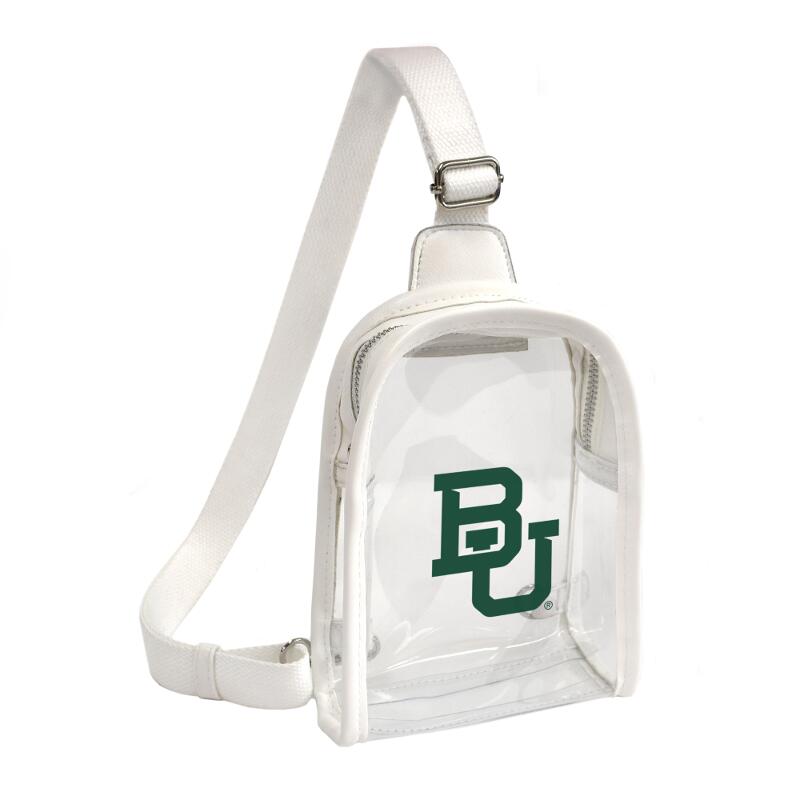 Go to games in style with these new Clear Stadium Sling Bags! This is a PVC Bag with polyester white trim and nickle plated hardware. The strap connects to either side of the bag with your favorite teams full color logo on it. These measure Length: 5.5", Width: 2.5", Height: 7.5"