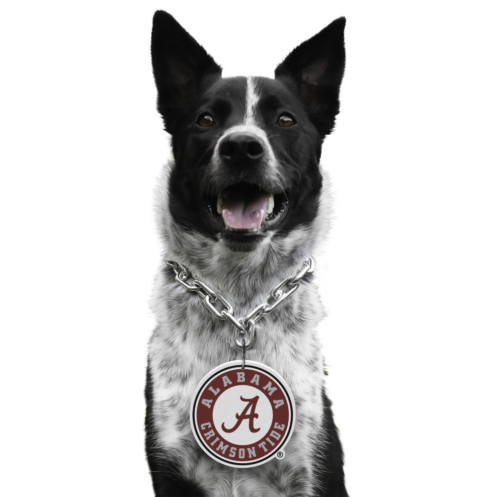 Prepare for a revolution in pet fashion with this Pet Fan Chain - the next big thing in showing off your furry friend's team spirit! It boasts a dazzling chrome-colored plastic chain adorned with a full-color foam team logo that leaps off your pet's fur. It's not just an accessory; it's a statement piece that demands attention! With adjustable chain links, it fits snugly on most dogs and cats, ensuring they strut their stuff in style. It features an adjustable strap locks that logo in place, so whether your pet is frolicking at the park or lounging at home, that emblem stays put! Wear it as a chic necklace for your pet or sling it confidently on their back - the choice is yours. The team logo isn't just any old insignia; it stands 5" tall and 5" wide, making sure everyone knows who your furry MVP is cheering for. Plus, we've thought of everything: a small strap that adjusts from 12" to 14" and a large one spanning 21" to 36", ensuring a comfortable and custom fit for pets of all sizes.