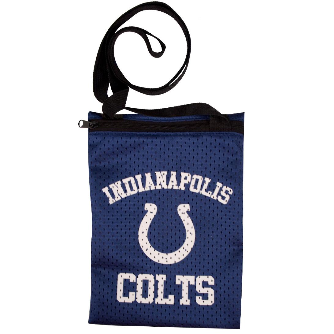 Small enough to carry around comfortably but large enough to hold your essentials! This NFL Game Day Pouch is perfect for easily accessing your cell phone, keys, money, chapstick and more. The pouch is made from NFL jersey material and features screen printed team graphics, a zipper closure and a 42" length cross body nylon strap. Made By Little Earth
