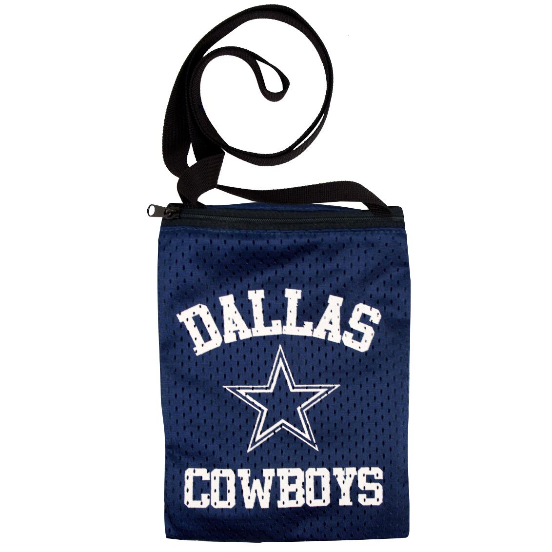 Small enough to carry around comfortably but large enough to hold your essentials! This NFL Game Day Pouch is perfect for easily accessing your cell phone, keys, money, chapstick and more. The pouch is made from NFL jersey material and features screen printed team graphics, a zipper closure and a 42" length cross body nylon strap. Made By Little Earth