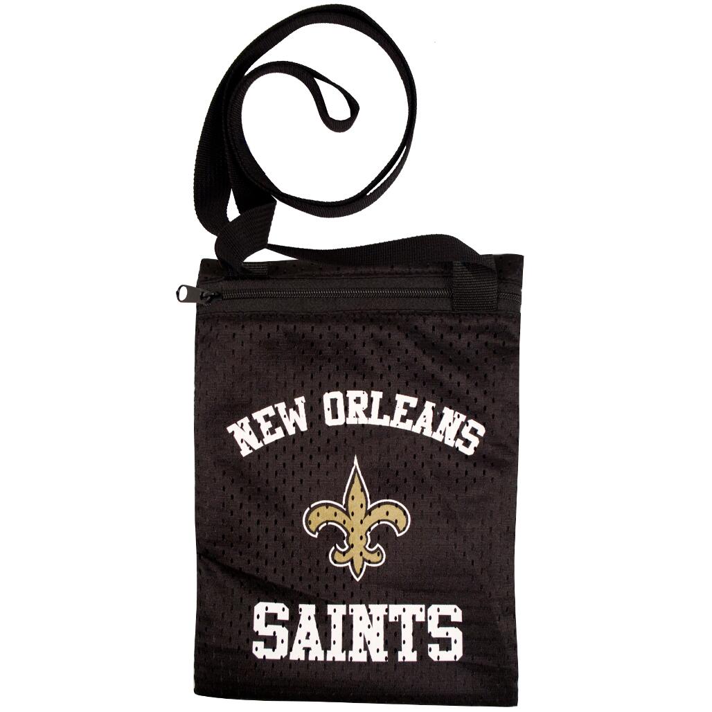 Small enough to carry around comfortably but large enough to hold your essentials! This NFL Game Day Pouch is perfect for easily accessing your cell phone, keys, money, chapstick and more. The pouch is made from NFL jersey material and features screen printed team graphics, a zipper closure and a 42" length cross body nylon strap. Made By Little Earth