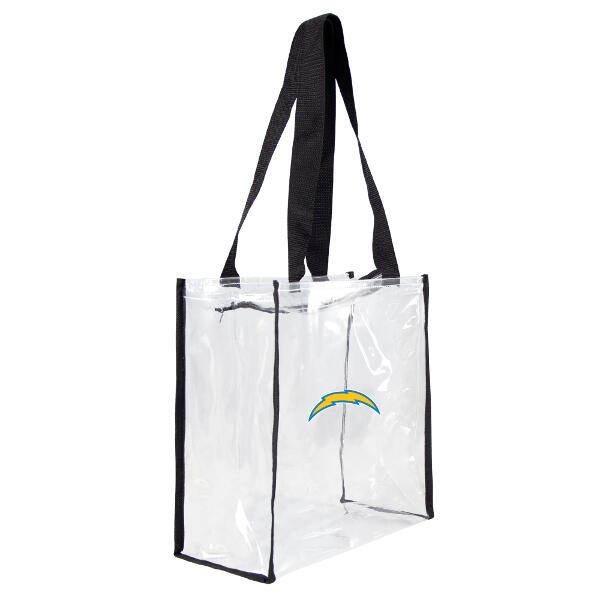This stadium tote features a zipper and double shoulder straps. This bag is approved for use in stadiums. Two Webbing Shoulder Straps, Zipper Closure & made of 100% PVC, 100% Polyester Straps. The bag displays the "Stadium Friendly" tag. Dimensions: 11.5x11.5x5.5 inches. Made By Little Earth.
