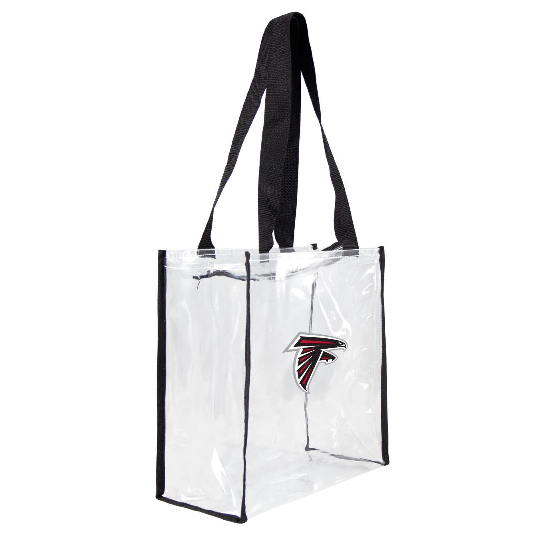 This stadium tote features a zipper and double shoulder straps. This bag is approved for use in stadiums. Two Webbing Shoulder Straps, Zipper Closure & made of 100% PVC, 100% Polyester Straps. The bag displays the "Stadium Friendly" tag. Dimensions: 11.5x11.5x5.5 inches. Made By Little Earth.