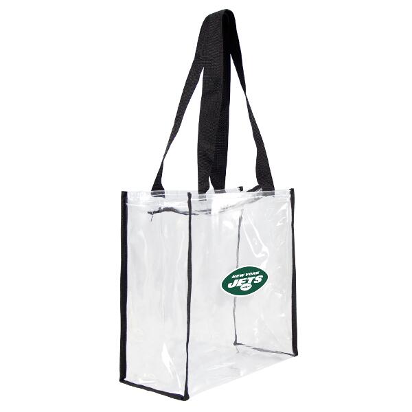 This stadium tote features a zipper and double shoulder straps. This bag is approved for use in stadiums. Two Webbing Shoulder Straps, Zipper Closure & made of 100% PVC, 100% Polyester Straps. The bag displays the "Stadium Friendly" tag. Dimensions: 11.5x11.5x5.5 inches. Made By Little Earth.