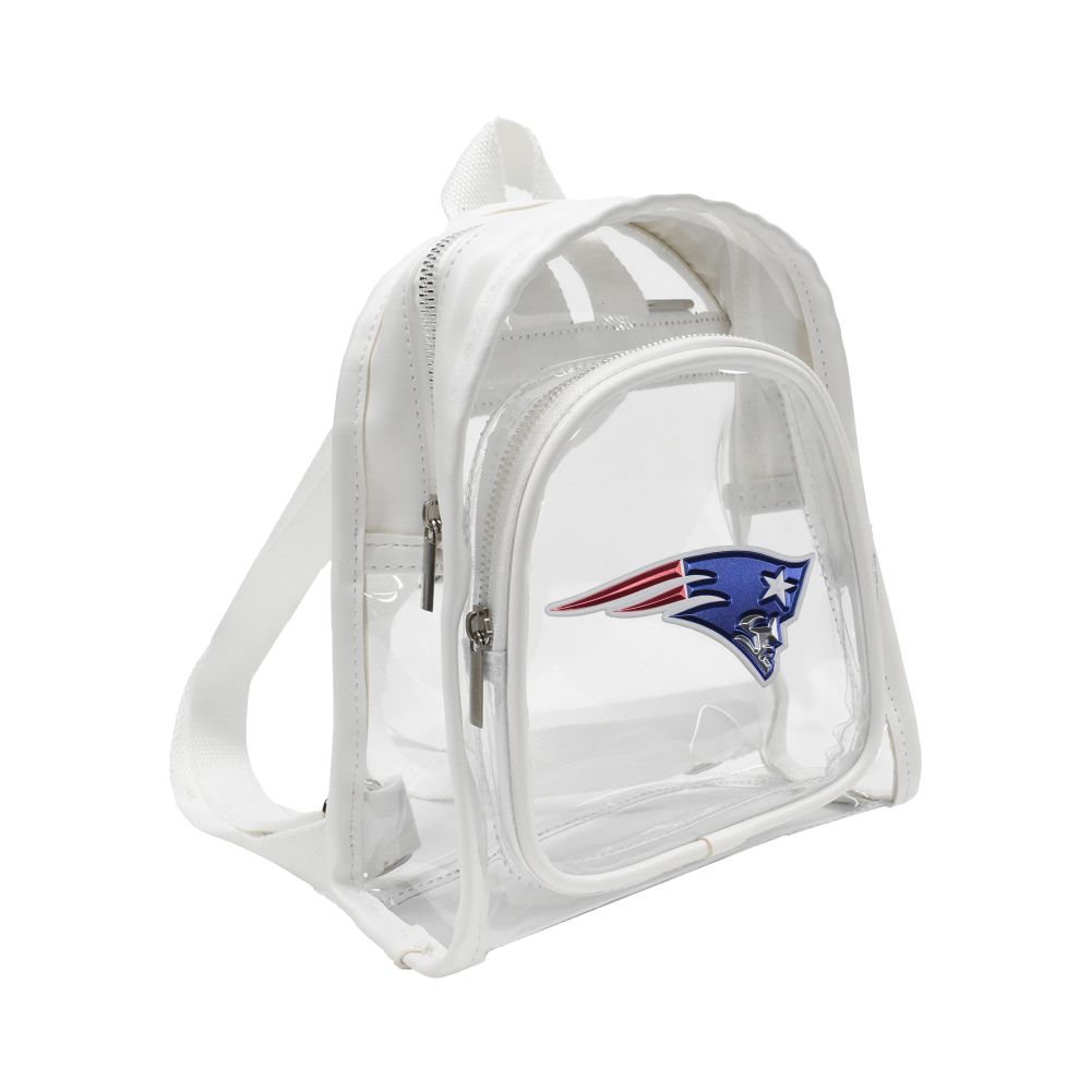 The Clear Mini Backpack combines style and functionality, crafted from durable 100% clear PVC. It features a large main compartment for your essentials and a small front compartment for added convenience. The bag showcases a vibrant 3D team-colored emblem, making it stand out. The leatherette zip panel and shiny nickel hardware add a touch of sophistication. Measuring 9” in height, 7” in width, and 2.8” in depth, this backpack is perfect for stadium events, as it complies with most stadium policies while offering both practicality and team pride.