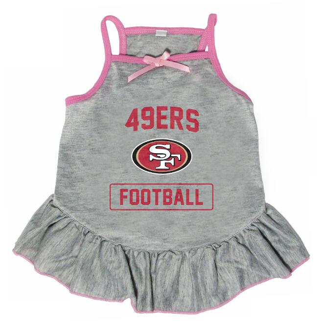 This adorable dress is the perfect accessory for your pet! Features a large logo of your favorite team, and a small pink bow for a touch of extra cuteness. Poly/cotton blend, Stretch fabric is easy to pull on and off your pet. This item is non returnable due to hygienic reasons.