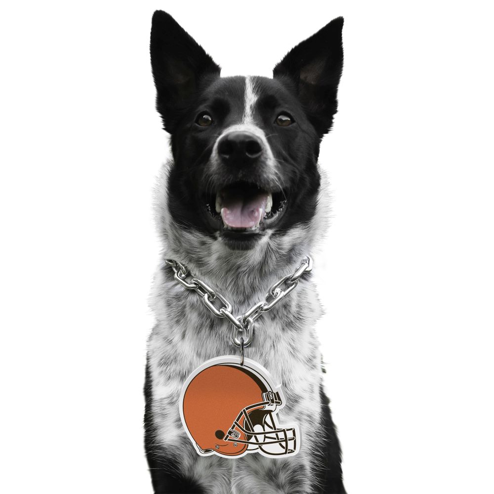 Prepare for a revolution in pet fashion with this Pet Fan Chain - the next big thing in showing off your furry friend's team spirit! It boasts a dazzling chrome-colored plastic chain adorned with a full-color foam team logo that leaps off your pet's fur. It's not just an accessory; it's a statement piece that demands attention! With adjustable chain links, it fits snugly on most dogs and cats, ensuring they strut their stuff in style. It features an adjustable strap locks that logo in place, so whether your pet is frolicking at the park or lounging at home, that emblem stays put! Wear it as a chic necklace for your pet or sling it confidently on their back - the choice is yours. The team logo isn't just any old insignia; it stands 5" tall and 5" wide, making sure everyone knows who your furry MVP is cheering for. Plus, we've thought of everything: a small strap that adjusts from 12" to 14" and a large one spanning 21" to 36", ensuring a comfortable and custom fit for pets of all sizes.
