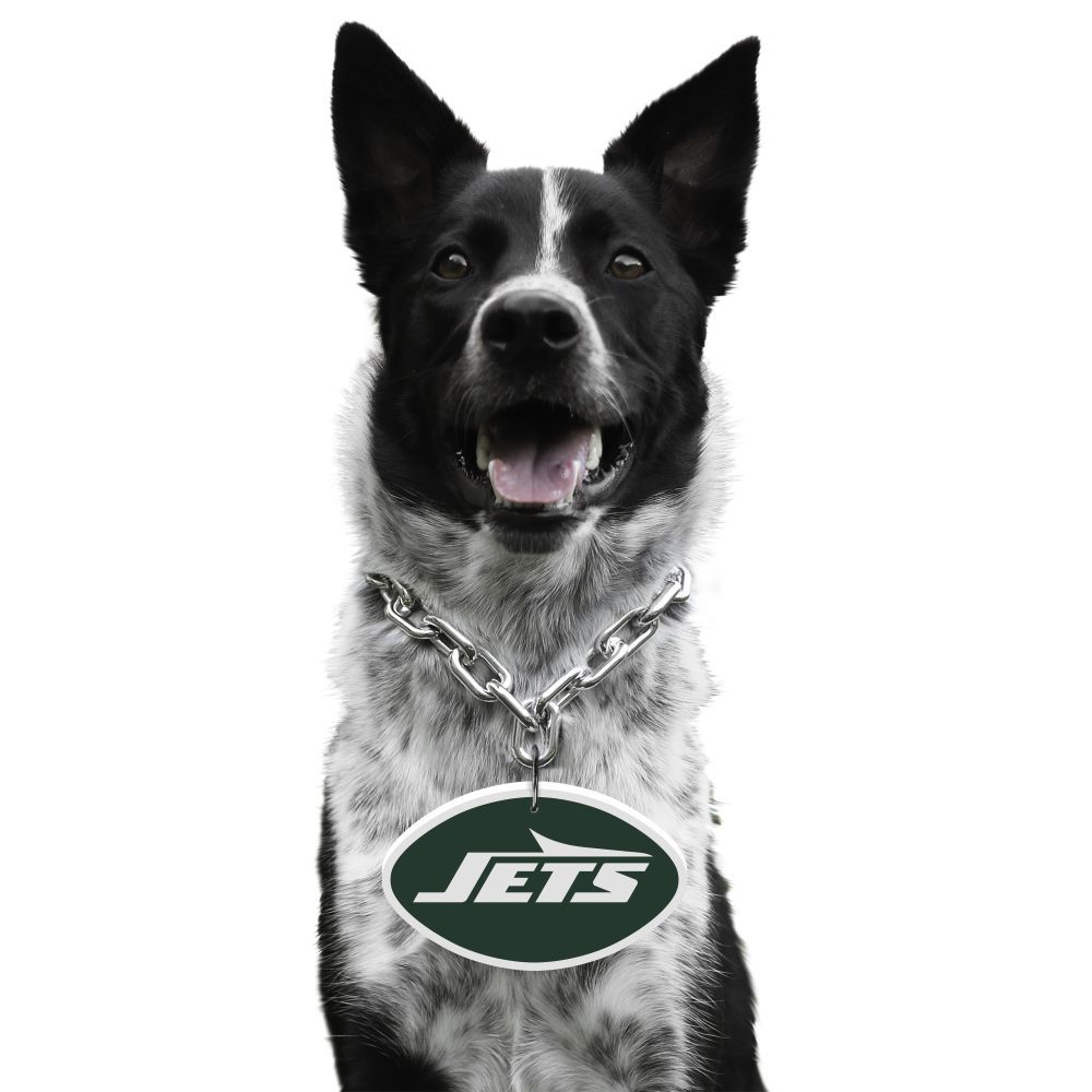 Prepare for a revolution in pet fashion with this Pet Fan Chain - the next big thing in showing off your furry friend's team spirit! It boasts a dazzling chrome-colored plastic chain adorned with a full-color foam team logo that leaps off your pet's fur. It's not just an accessory; it's a statement piece that demands attention! With adjustable chain links, it fits snugly on most dogs and cats, ensuring they strut their stuff in style. It features an adjustable strap locks that logo in place, so whether your pet is frolicking at the park or lounging at home, that emblem stays put! Wear it as a chic necklace for your pet or sling it confidently on their back - the choice is yours. The team logo isn't just any old insignia; it stands 5" tall and 5" wide, making sure everyone knows who your furry MVP is cheering for. Plus, we've thought of everything: a small strap that adjusts from 12" to 14" and a large one spanning 21" to 36", ensuring a comfortable and custom fit for pets of all sizes.