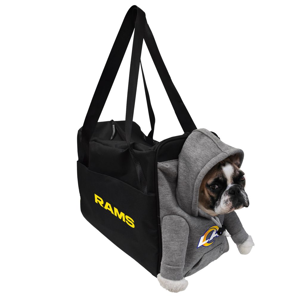 The Furry Fan Pet Carrier is the ultimate combination of style and functionality for pet owners who love to show off their team spirit! With its hoodie front adorned with a full-color team logo and wordmark, it's not only a carrier but also a fashion statement. The functional hood allows your pet to peek out comfortably, while the fabric "paws" add an adorable touch. Safety and comfort are paramount, with features like an adjustable cinch toggle and durable top zipper to keep your furry friend secure, and mesh panels for ample airflow. The sturdy 1.5" wide webbing straps with a 13" drop ensure easy carrying, and the removable inner pad makes cleaning a breeze. Plus, its practicality extends to travel, as it can be stowed beneath most standard airline seats, making it convenient for pet owners on the go. With dimensions of 16" in length, 8" in width, and 11" in height, it's spacious enough to accommodate pets up to 20 lbs while still being compact and manageable.
